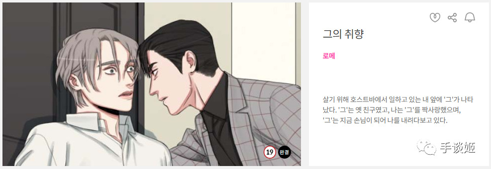 首先,这部漫画是确实存在的,原作也确实就画那样,并非网友们后期恶搞P图,漫画名为《그의 취향》,直译过来就是《他的取向》,国内似乎也有翻译为《常客》的。