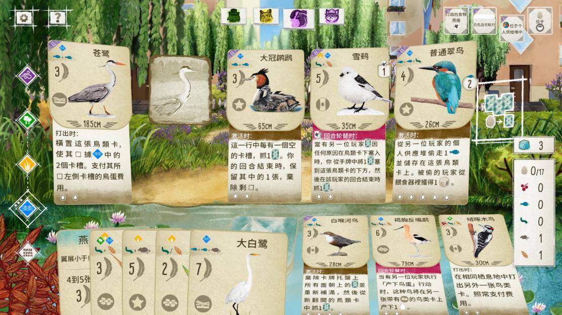 《展翅翱翔》是一款屡获殊荣的鸟类主题策略卡牌游戏,也是一部鲜活的交互式鸟类百科,清新有趣,轻松愉快,适合1-5名玩家。作为鸟类发烧友,你的目标是发现和吸引更多的鸟儿加入你的自然保护区。
