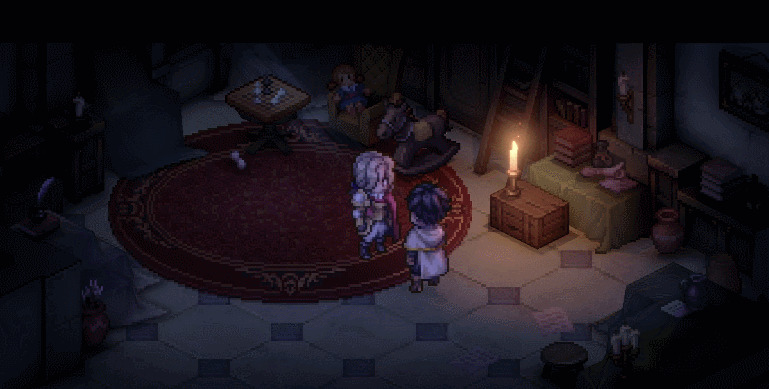 由此,我们不难看出NeoPixel技术力的强大,它赋予了传统像素更加精美的表现,让原本2D的画面变得生动起来。这种生动在诸多方面均有体现。以这段剧情演出动画为例,无论是有人砸门闯入带来的屏幕震动,还是两人拔剑时的流畅动作,亦或者是角色被扔在地上激起的尘土,以及来着由远及近的影子变化,都在细致的描绘着当前故事的全貌,没有一丝阻滞,整个演出丝滑无比,代入感十足。
