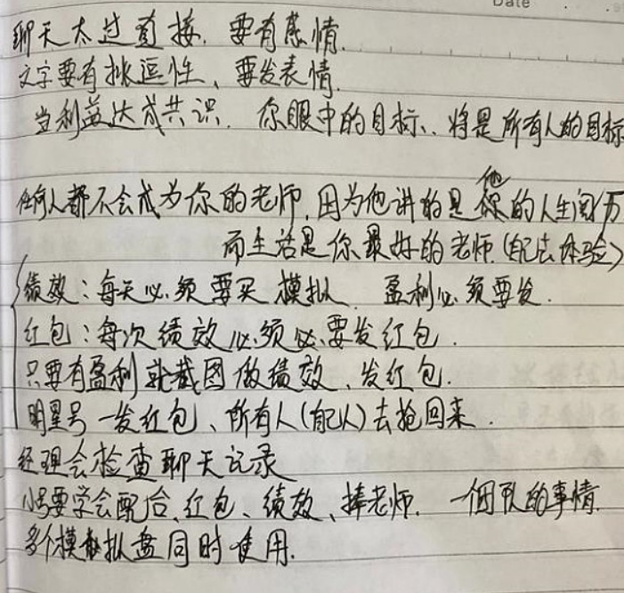 而在所谓的电销群( 其实就是电诈 )里,差评君看到了更详细繁琐规则:
