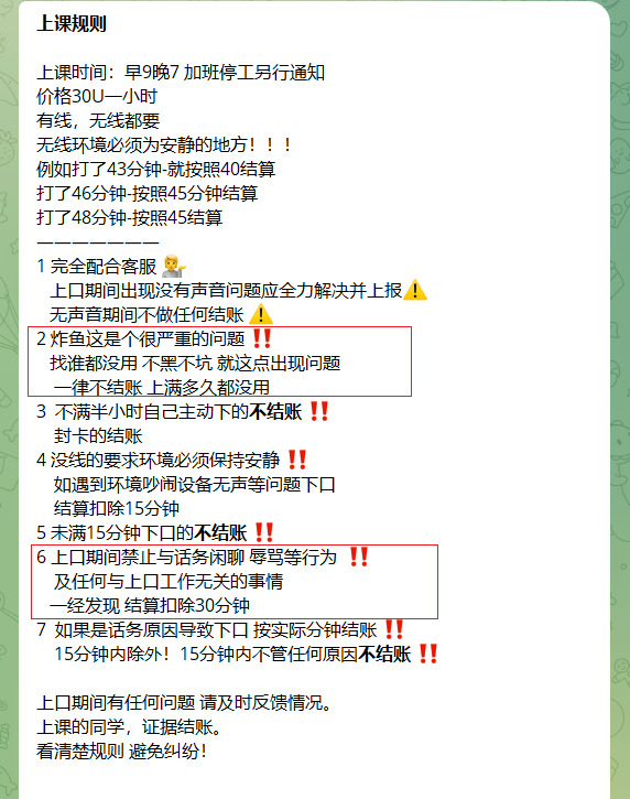 所有 “ 手机口 ” 群聊里,都会反复强调要求群里的人管好自己的小弟,出现炸鱼一律不结账。