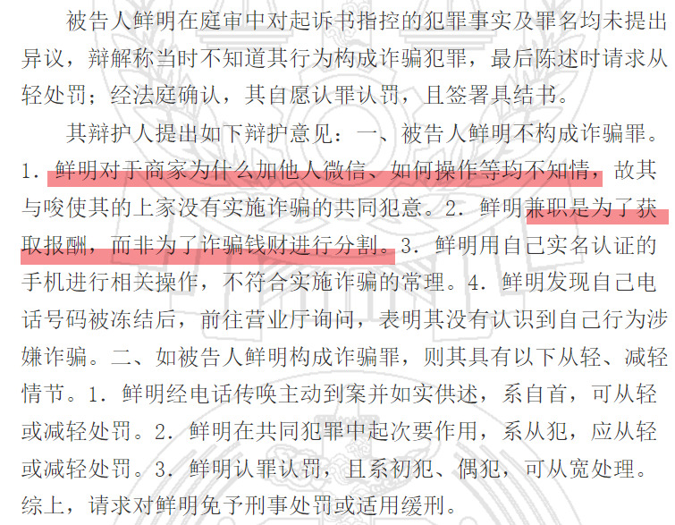 当然,也有极少数人,被 “ 高薪兼职 ” 诱骗,帮助了实施诈骗还不自知。