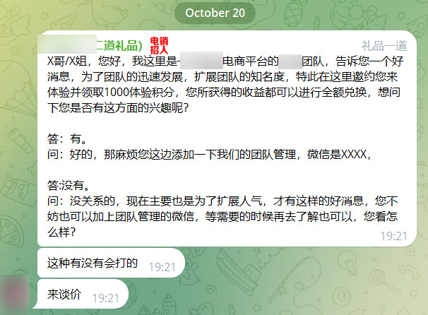 其中,获取一批隐私信息,并打电话建立联系让潜在受害者 “ 领取小礼品 ” ,就是正式行骗的第一步。