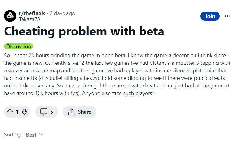 在Reddit上的一篇帖文中,有用户指出“我在每局比赛中都能遇到多达3名的明显作弊玩家,有时甚至会连续几场比赛中出现”。