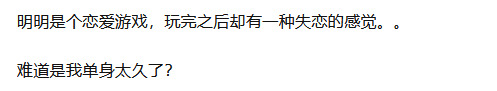 看完录播后,给我的感觉是——哈哈,我刚才那一堆在我自己身上找对恋爱游戏不感冒理由的行为,都像个**。