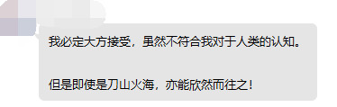 “我必定大方接受,虽然不符合我对于人类的认知,但即使是刀山火海,亦能欣然而往之!”