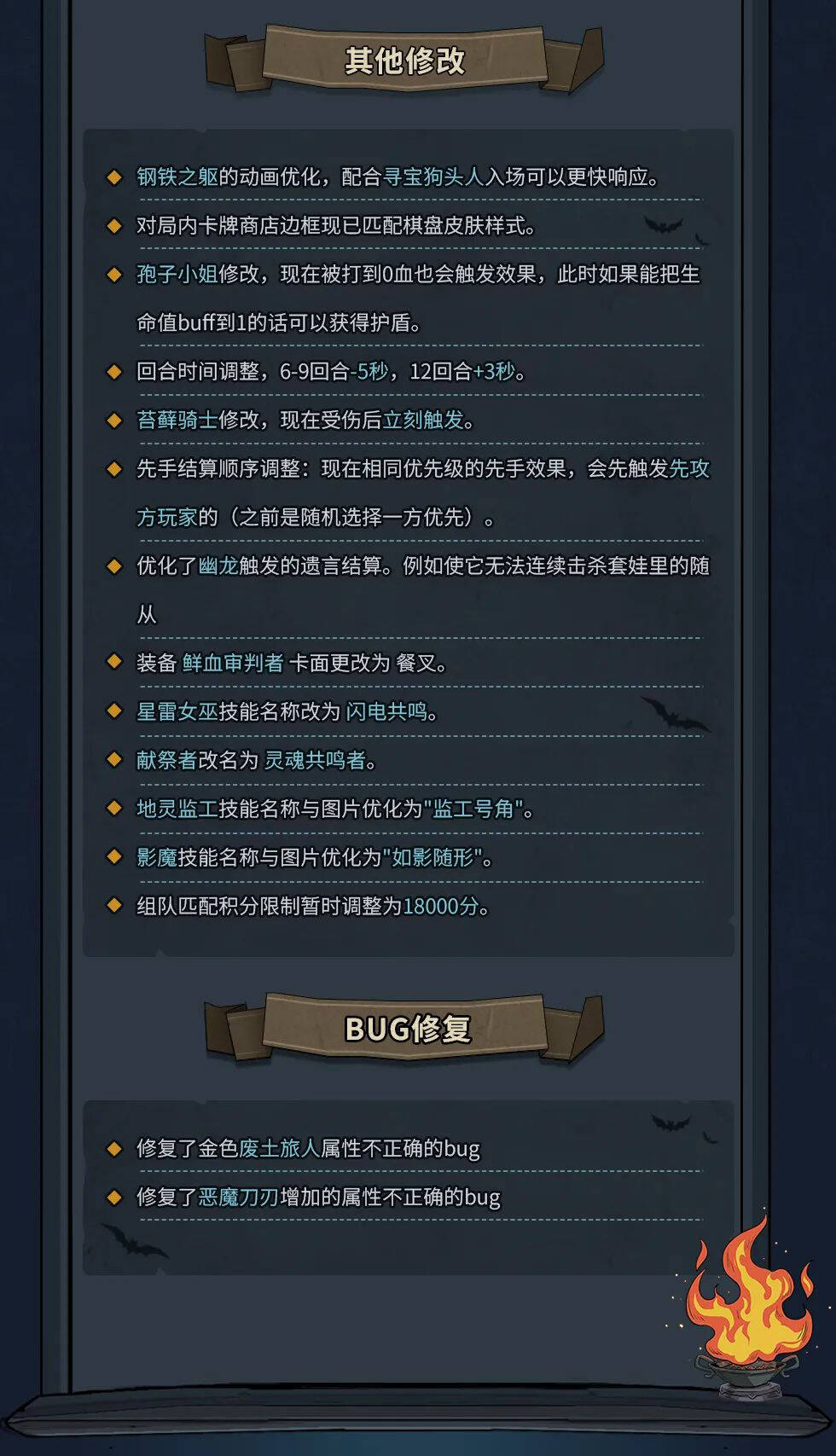 - 最后是装备和咒术的改动。幽暗烛光是不是专门给黑玫瑰的装备呀?这么看来。黑玫瑰到4本,它也跟着到4本了。确实,黑玫瑰拿这个挺好的。还能更早配合自爆流了。所以!石精巨兽啥时候能降一下!自爆流感觉可玩!