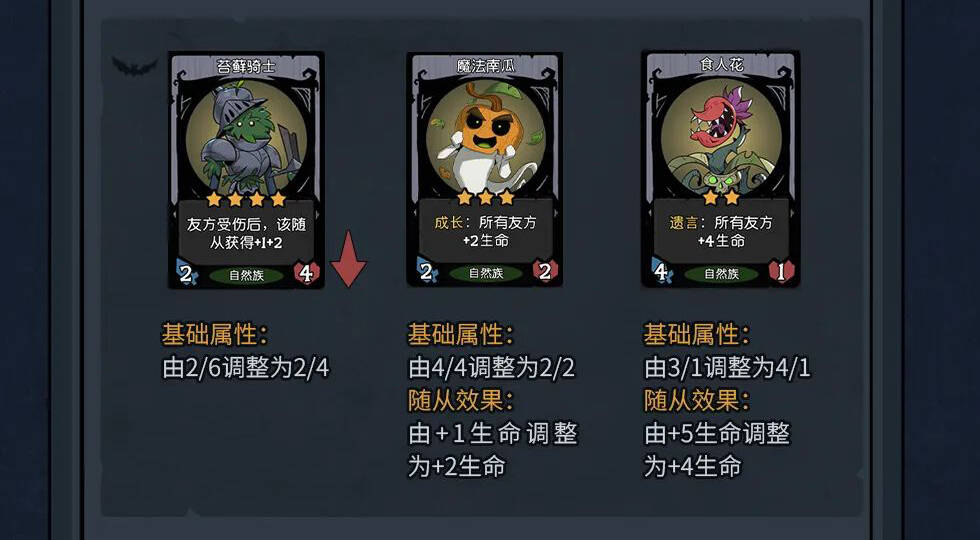 - 魔法南瓜本来的+1生命在3本确实显得有点小了,现在+2生命,更合理了。