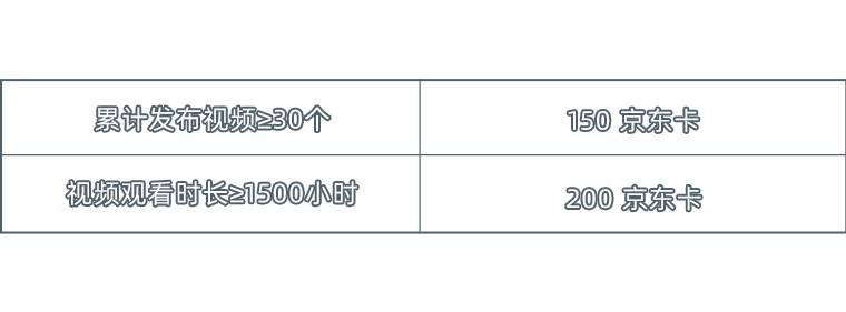 1、创作者入驻奖励:活动期间,联系管理员完成入驻评级且同步上传更新视频,即可获得京东卡奖励及热度奖励。