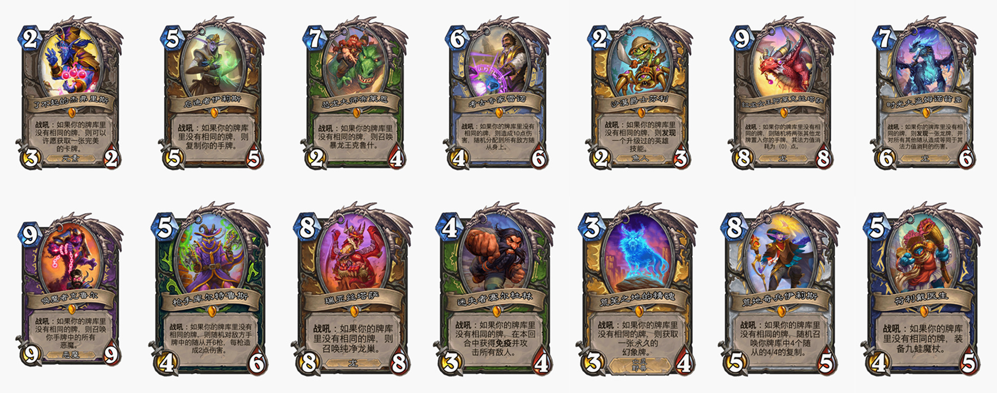 如果说竞技场的牌池轮换、双职业和时光酒馆算是内容层面的新意,那么像这次这样的选牌机制层面的新意实在是久违了,而且后者的反响往往比前者差得多——上一个特殊的选牌机制“分级”从2018年初持续到2019年下旬,因其巨大的复杂度和更新难度被放弃,而更早之前2017年的“前两抓”机制更是在社区的抱怨和嘲讽下仅仅持续了一个月。现在又有新的机制即将到来,目前还只试行荒芜之地/28.0这一个赛季,不知道反响会如何。