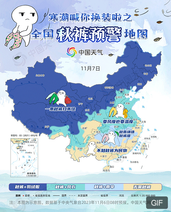 不经一番寒彻骨,怎能想起穿秋裤!秋冬换季之时,气温起伏不定,随时准备好秋裤是迎接冬天最重要的仪式。中国天气网温馨提示,要风度更要温度,大家请根据天气预报及时加衣。
