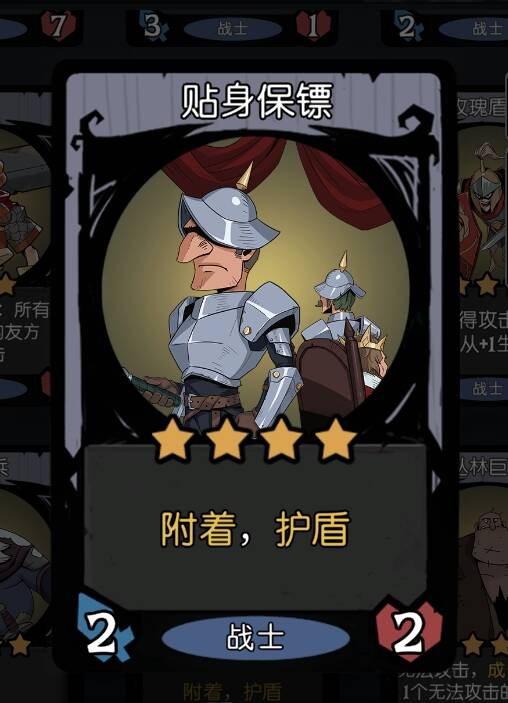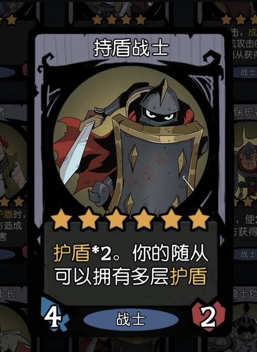 因为游戏的机制,每个随从都只能获得一层护盾,那么我们要使大家都贴很多膜,就需要一位【持盾战士】。