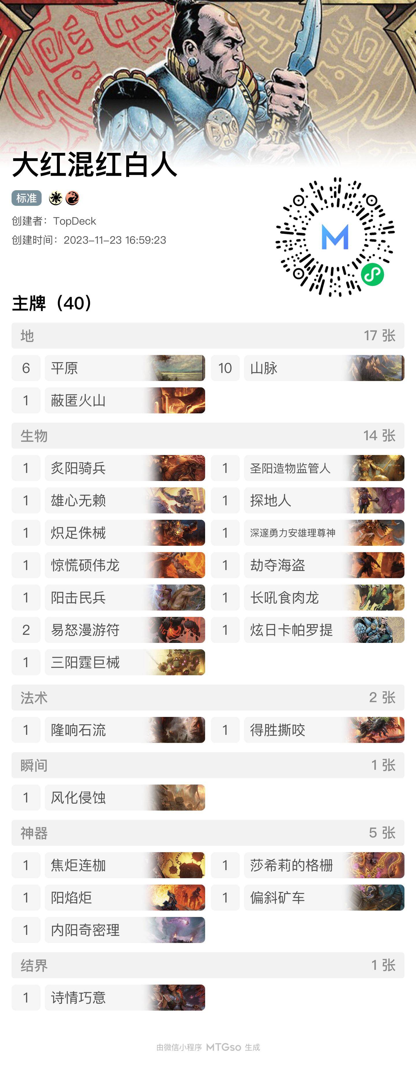 先来一套接近全红的现开 7 胜套牌,整个套牌只有一张红白双色银牌...最终战绩 7-2。