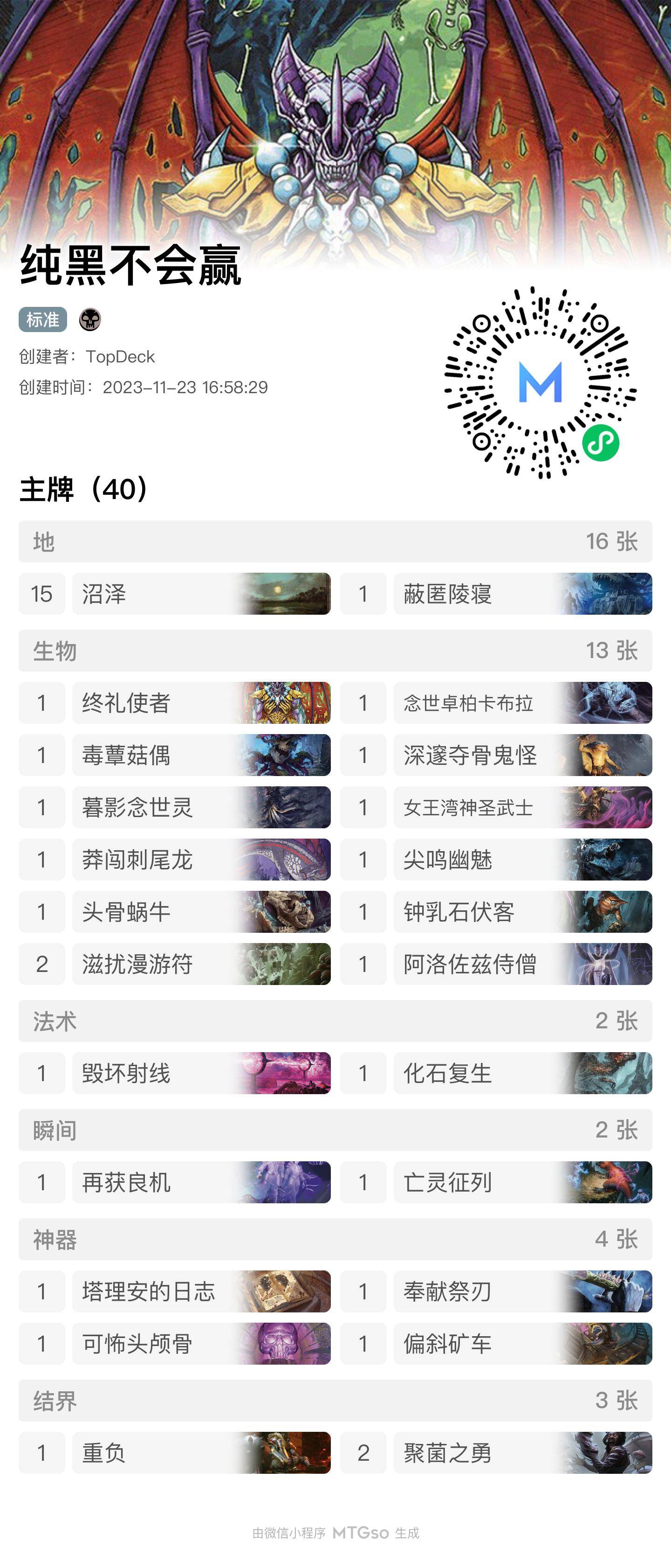 这会是个彻底的单色现开套牌了。纯黑...但是怎么看这个强度...我都没懂怎么能赢。最终战绩...还是 7-2。图片图片