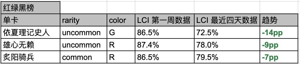 MTGA 的 LCI 限制环境对比上线第一周,有哪些单卡的选择发生了变化