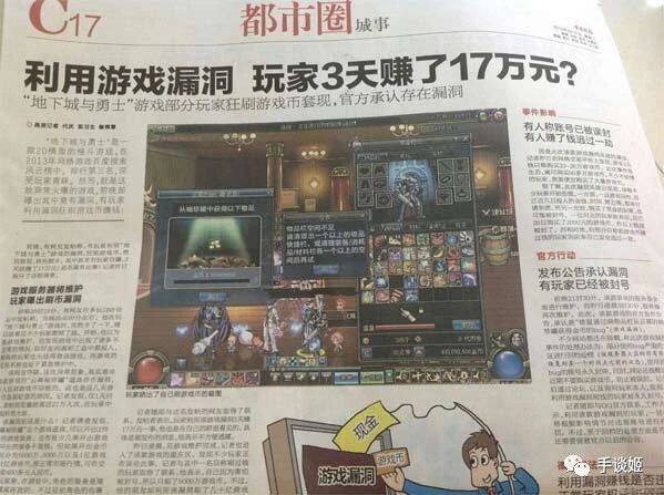 网上流传一张2013年的报纸截图,写着“利用漏洞,玩家3天赚了17万元?”17万这个数字已经很大了,但玩家表示,如果把9000万放银行,按年化利率2.3来计算,一个月的利息就已经有17万之多。十年之后,游戏漏洞非但没有根治,反倒愈演愈烈了?