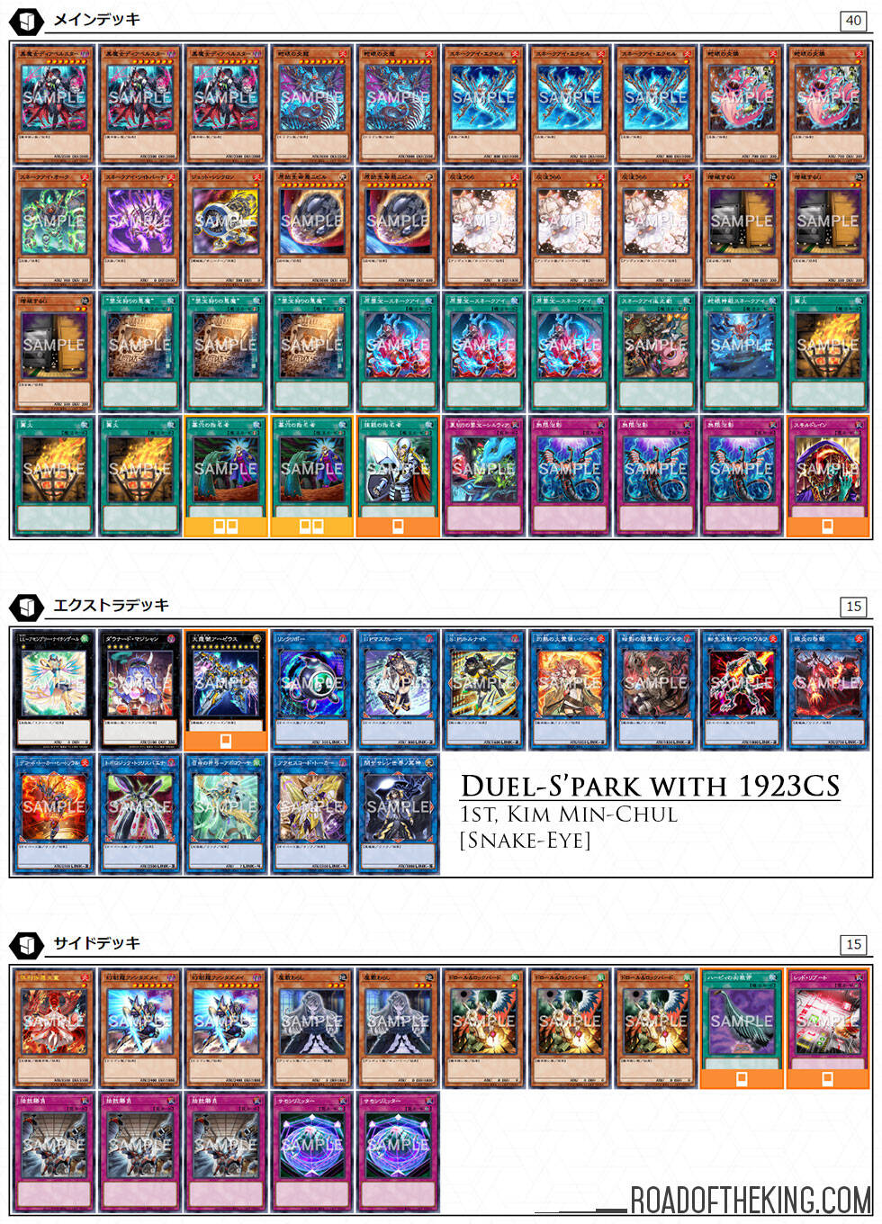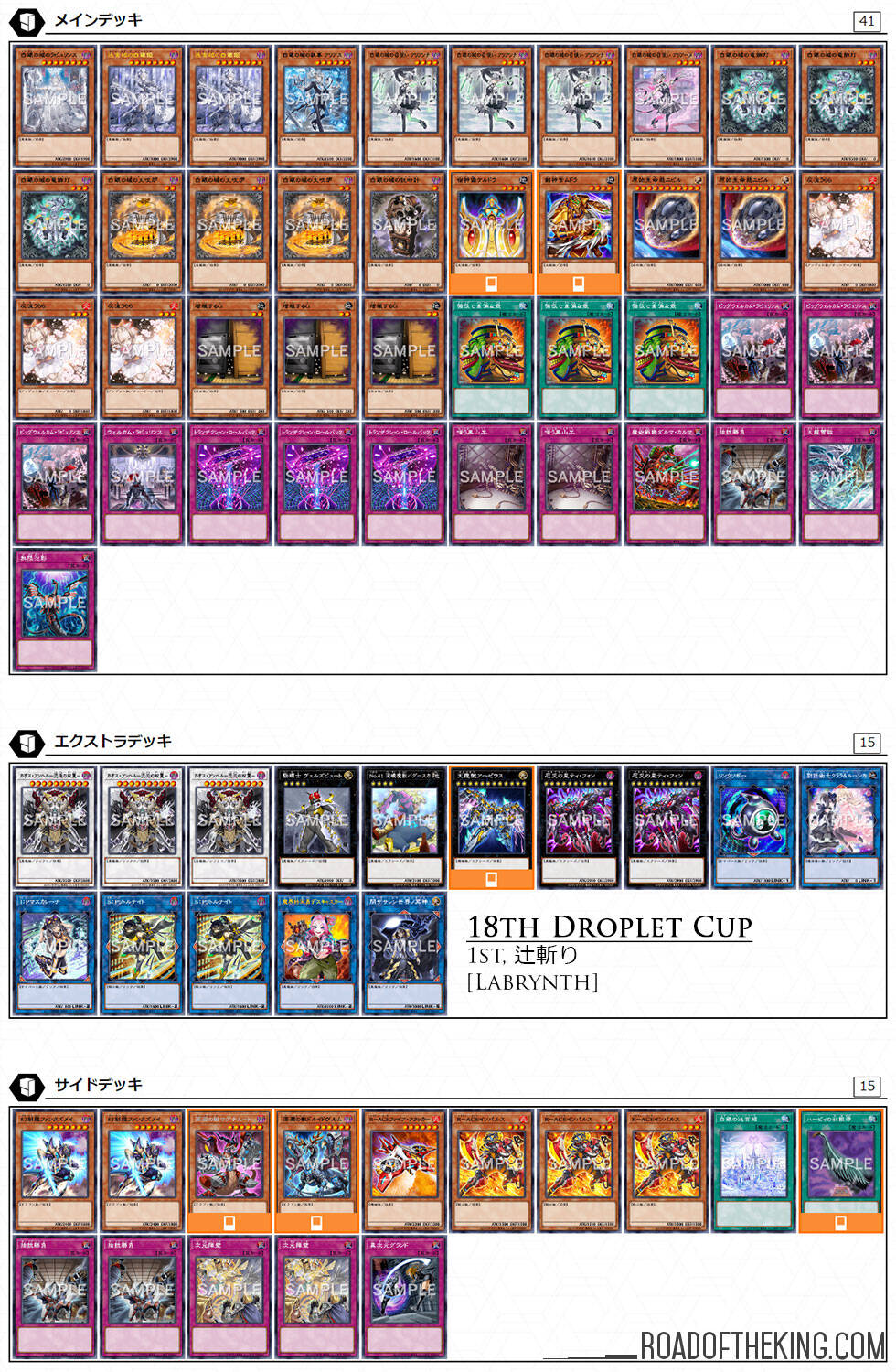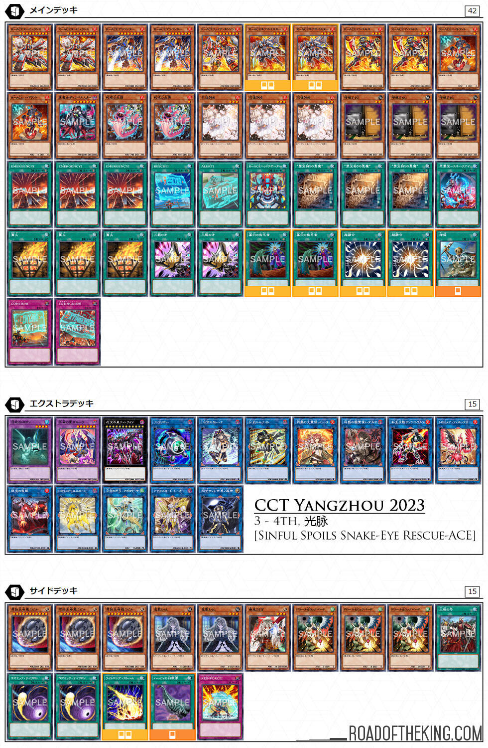 主卡组和副卡组中“手坑”的变化是环境变化的证据。 大多数玩家都放弃了效果遮蒙者和无限泡影。救援王牌有S:P小夜和赐炎之咎姬,而肃声有古圣戴始龙和肃声之结界来阻抗。