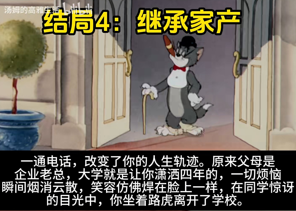 有的汤姆杰瑞虽然没有那么家财万贯,但是他们父母可能身居某重要企业的重要岗位。于是他们全家上下总动员一起努力奋斗,终于在孩子毕业的时候帮孩子塞到了一个可有可无的岗位上。