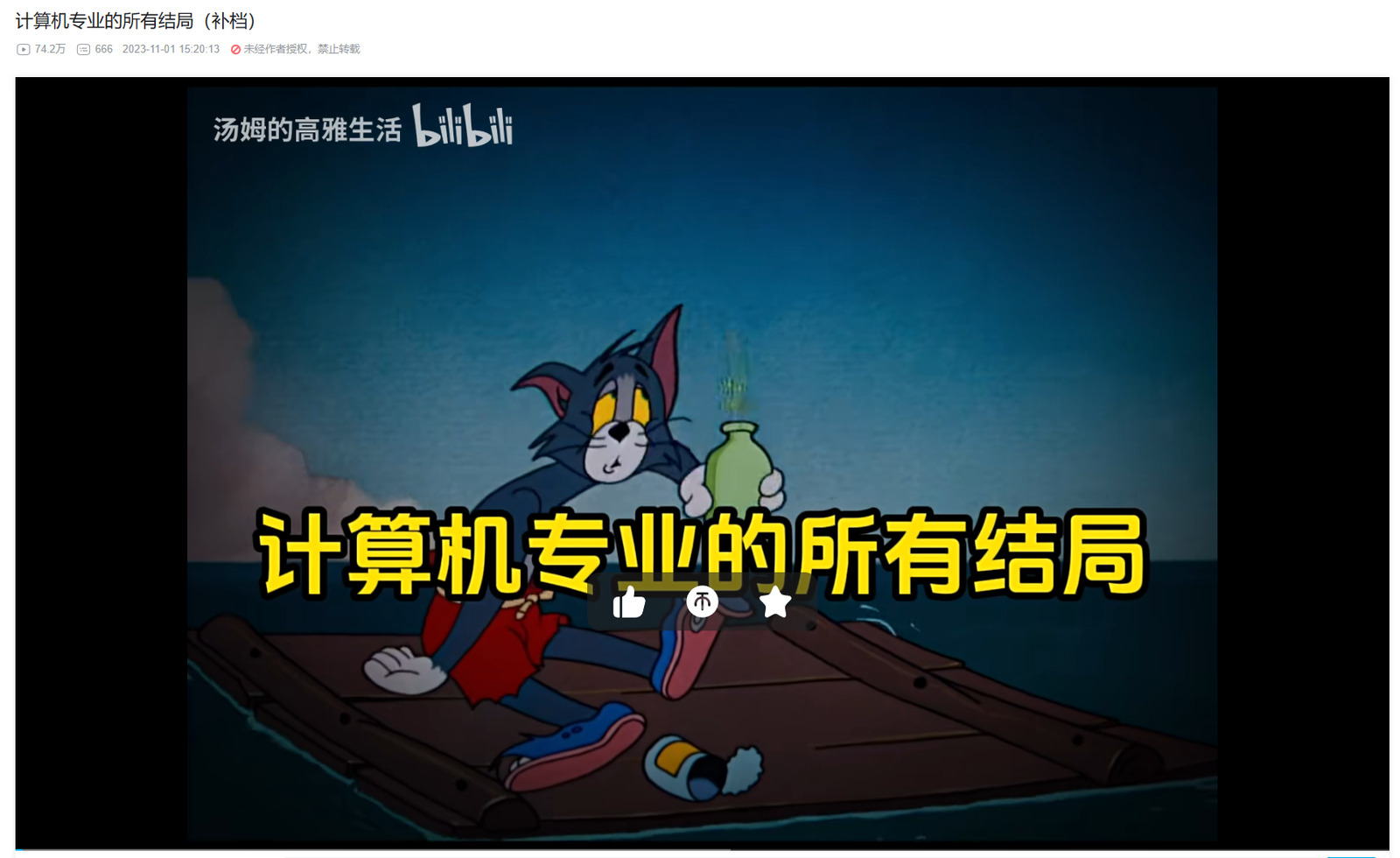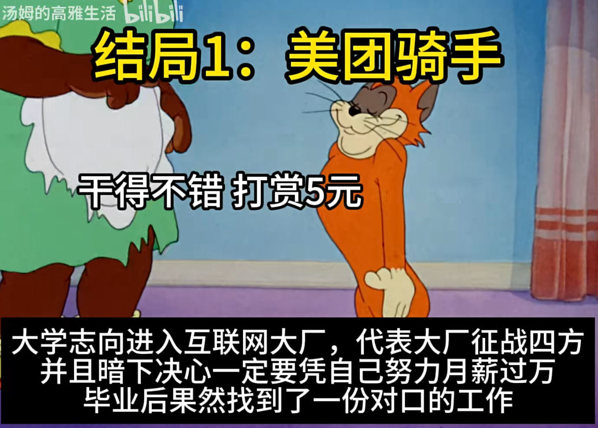 而拼爹拼娘不成汤姆杰瑞们只能靠着自己得脚步,一步一步地摸黑往上爬。他们中有的跟随当年的大部队一窝蜂挤入计算机,以为毕业出去了自己就会像风口上的猪一样,大厂们会抢破头来求你入职。