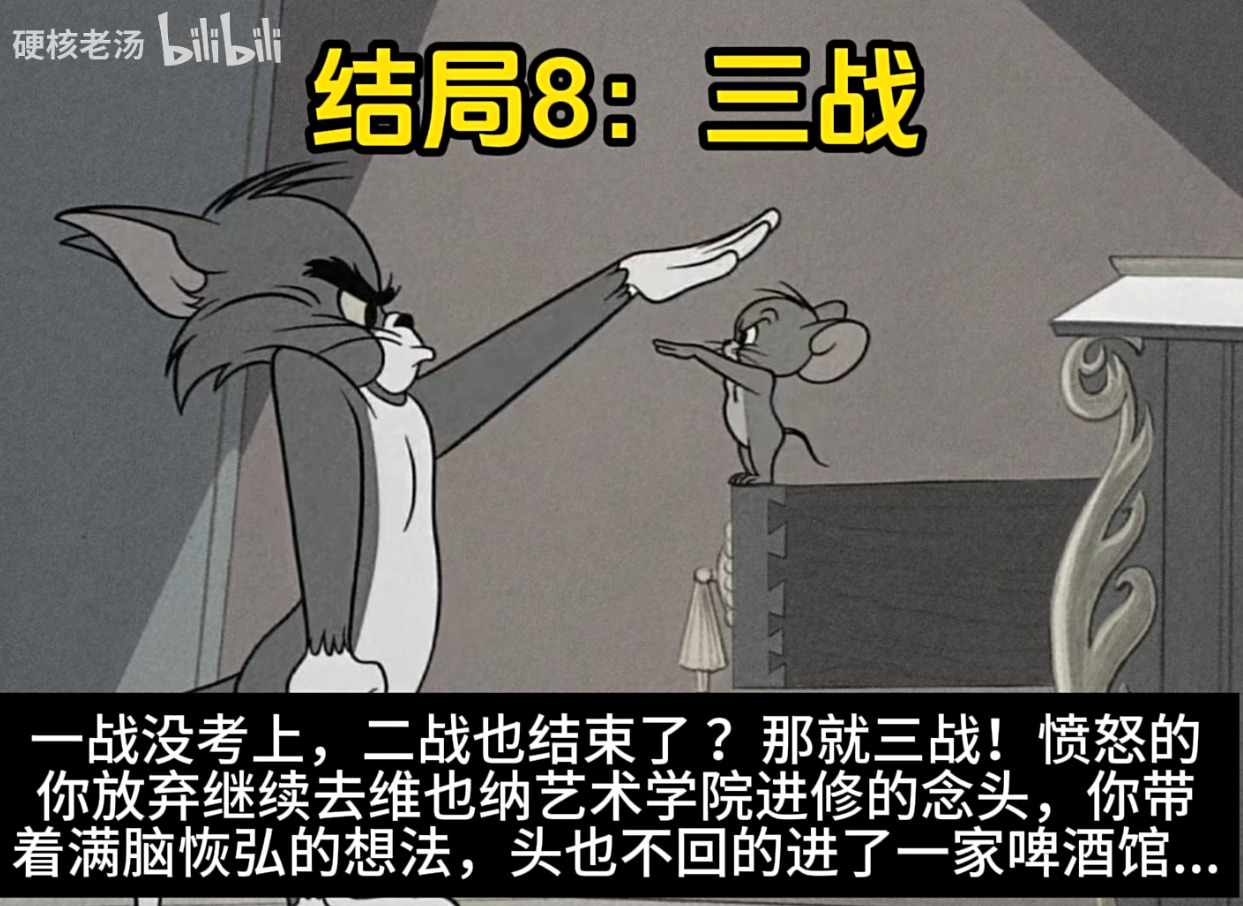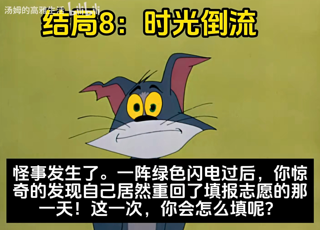 这时天空突然雷声大作狂风涌动,一阵白光使得所有汤姆和杰瑞都短暂地致盲。白光散去,他们睁开眼睛,发现自己竟然回到高考后,那个似乎是决定自己命运的转折点。