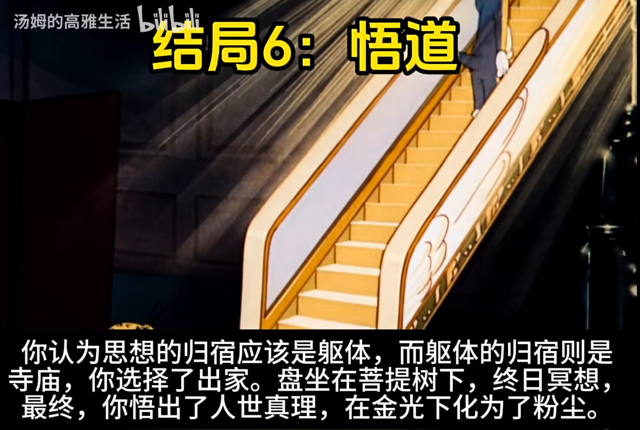 有的熟读各类哲学后冥思苦想,最终悟出了至高真理:高贵而放荡不羁的塔玛希哟,你不能因为物质与肉体的限制和重力的束缚而屈尊于此!他放下一切羽化成仙,前往自己心中的极乐净土。