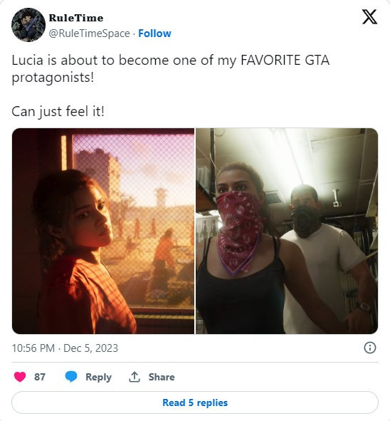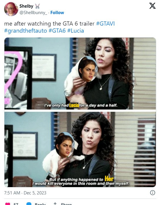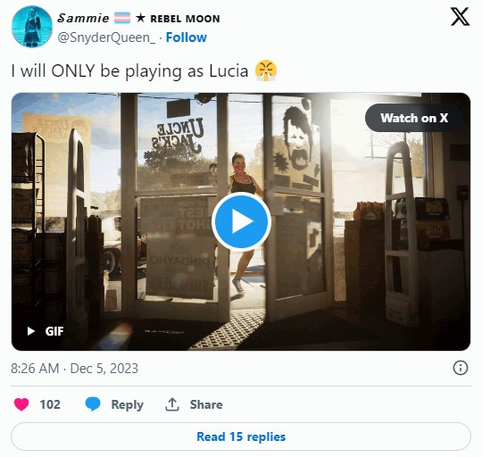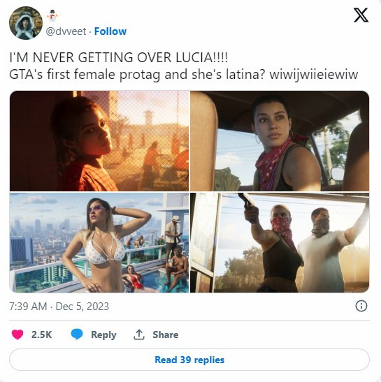 但仅从预告片来看,Lucia已经成为该系列有史以来最突出的女性角色,尤其代表了工作室理念的重大转变,所有这些都可能解释了为什么R星如此渴望炫耀她,以及为什么女性对她的酷炫感到如此兴奋。