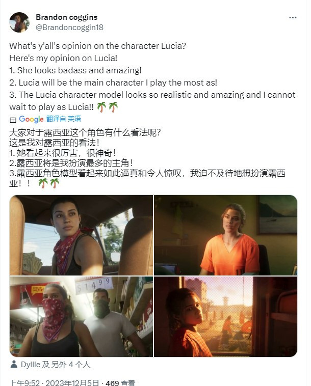 以下是Twitter上国外玩家的反应,很多人对女主Lucia赞不绝口:
