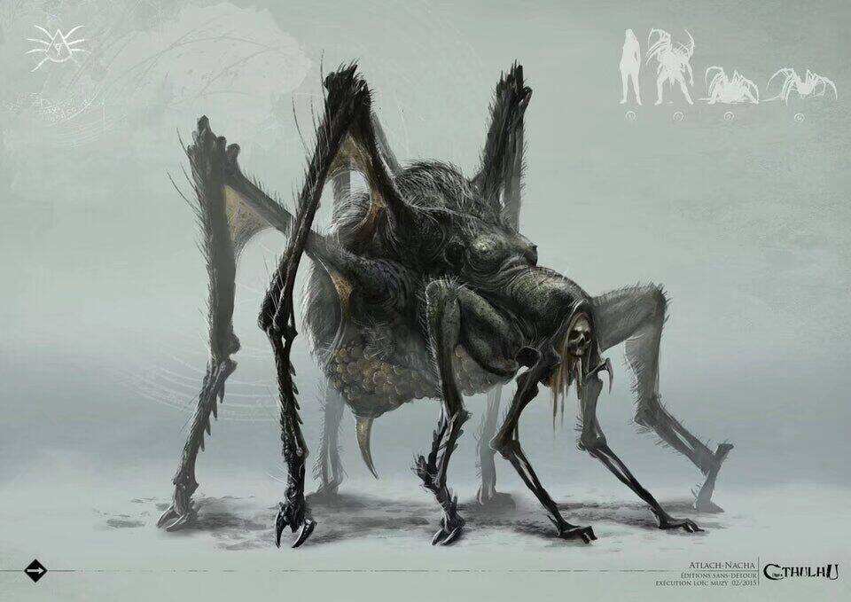 阿特拉克·纳克亚(Atlach-Nacha) ,蜘蛛之神,形象为一只巨大的蜘蛛,**与人类相似的面孔,由克拉克·A·史密斯创造的蜘蛛形象旧日支配者,与蛙形神撒托古亚有着密切的联系,有时共享人类的祭祀,而且传说它和撒托古亚是一同从土星降临地球的。