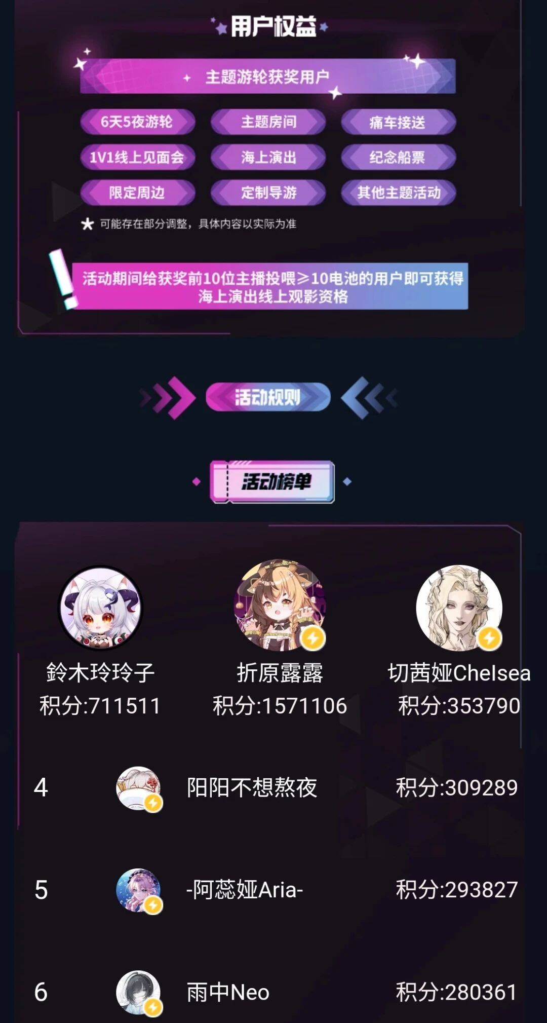 而充钱前十的用户,就可以获得海上演出观影资格了。游轮会开到日本去,最终返回上海。