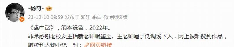 对此美术总监杨奇在微博上晒出了这幅壁画的原画,以及作者的信息。据悉原画名字为《盘中谜》,作于2022年;作者是来自中国美术学院中国画系人物专业研究生王怡新,是杨奇的校友。