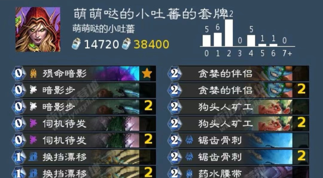 二蓝一绿的疫病挖掘DK基本完成了构筑优化,在当下环境中也能作为“雷诺杀手蟹”而拥有自己的生存空间——尽管可能出乎意料,这个卡组即使拥有“你不准使用雷诺”的赢点,但对阵宇宙卡组也占不到明显优势,卡组的随从普遍身材较差,站场压力往往全靠链缚守护者、矿坑老板雷斯卡和艾泽里特鼠这些必须后期才能低费打出抢回节奏的卡上,而这往往需要前期足够多的疫病让对手丧失自己的节奏,这种全盘依赖于随机性的节奏要求,也不怪疫病DK常常被安个小丑emoji了)。