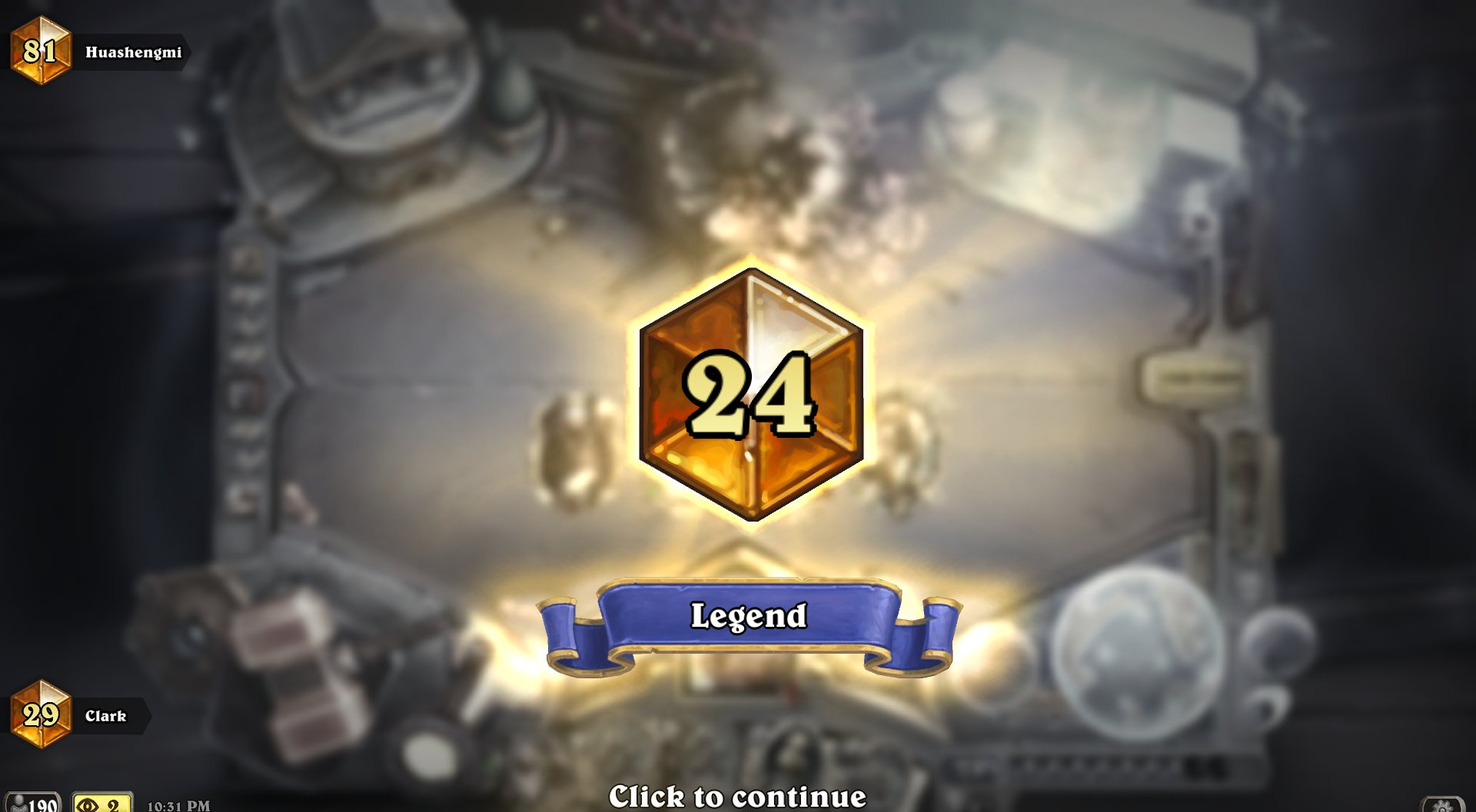- 天梯卡组: 疫病DK、纳迦瞎、半宇宙龙德、 龙德、光铸骑、非光铸花园骑、宇宙骑、决战骑、奇迹牧、纳迦牧、法强萨、宇宙萨、半宇宙奥丁战