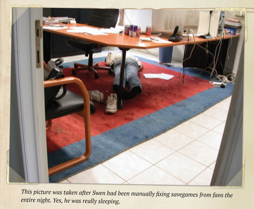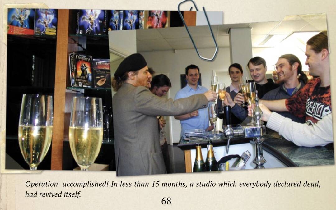 但他没有告诉员工的是,工作室陷入了严重的财政危机,整个比利时已经找不出第二家愿意贷款给他们的银行,而根据比利时相关规定,当公司倒闭时,承担责任的只有老板,员工会被法律保护得很好,斯温不想给团队施加太多的压力。