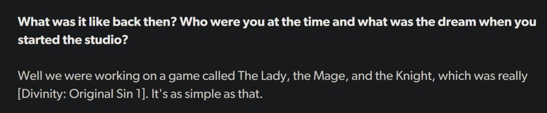 今年7月,在接受外媒Eurogamer的采访时,斯温提到了创业之初那款至关重要的游戏:“当时我们正在制作一款叫做《LMK》的游戏,它真的就是《神界:原罪1》,就这么简单。”