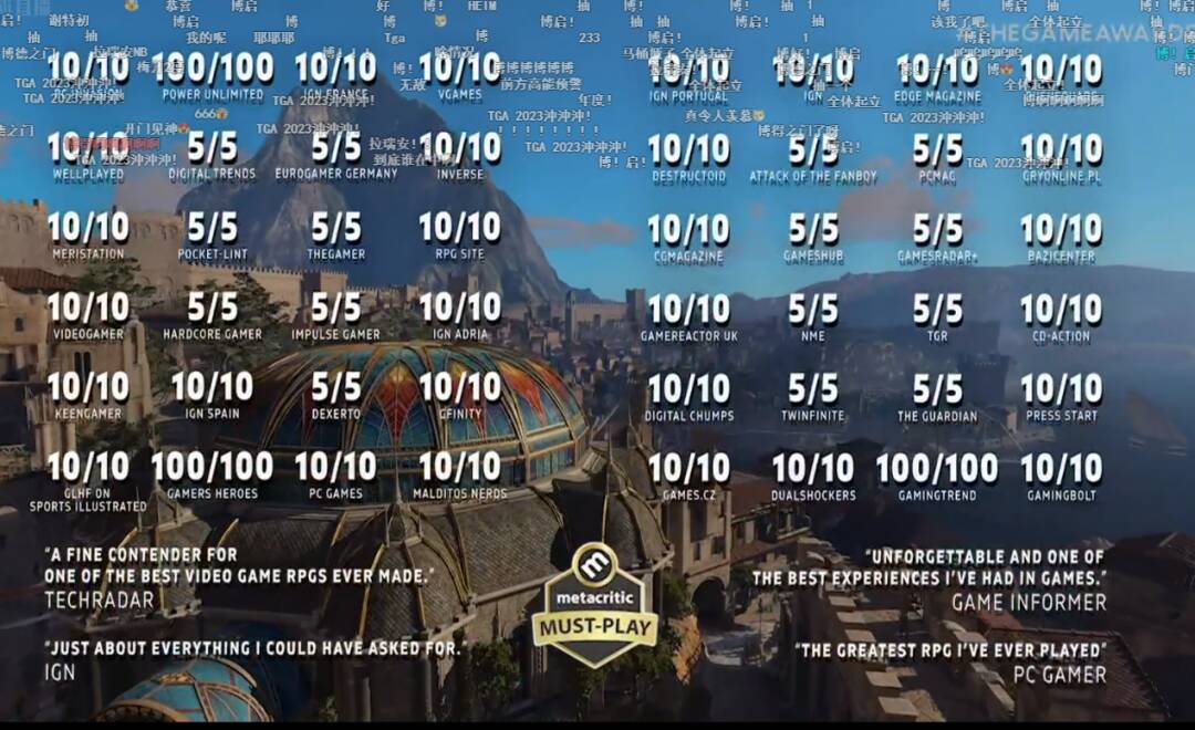 TGA颁奖礼上《博德之门3》展示的评分墙