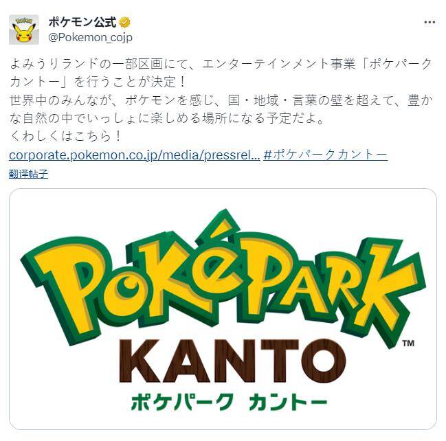 12月12日,宝可梦官方宣布将建设宝可梦主题公园“PokéPark Kanto”,该项目将与读卖新闻和读卖地产合作,预计将成为读卖公园的一部分。根据官方说法“PokéPark Kanto”计划成为一个让全世界各地的人们都能够超越国家、地区和语言的障碍,在丰富的自然环境中体验宝可梦乐趣的地方。