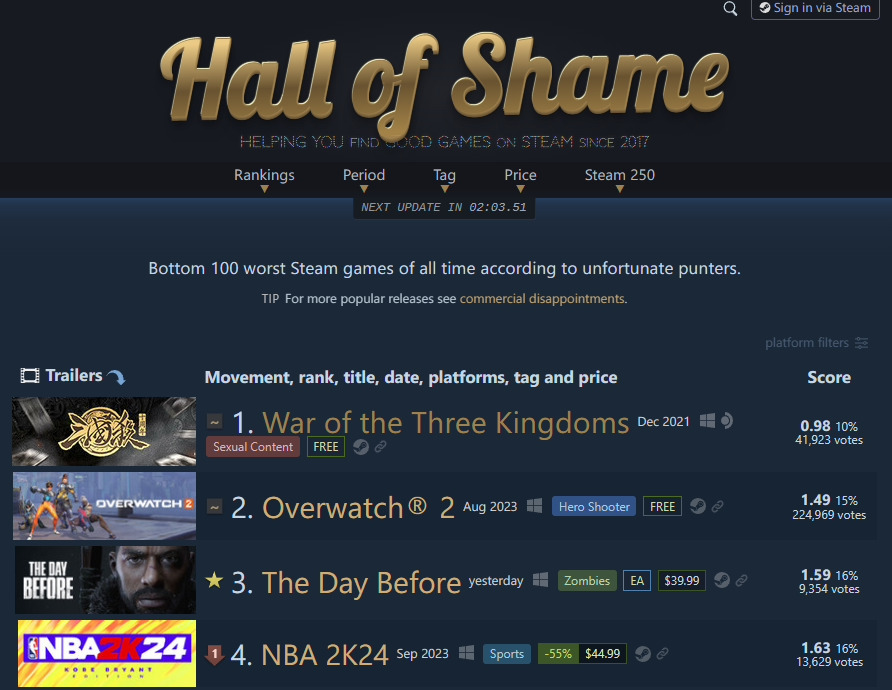 IT之家此前报道,长期以来,《三国杀》《守望先锋 2》《NBA 2K24》分列 Steam 差评榜的冠亚季军。