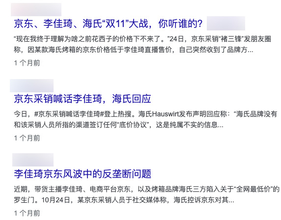 这也在双十一前闹出了 “ 海氏烤箱 ” 的风波,也再次让人唏嘘,在一些商家眼里,京东这么一个大平台,议价权甚至还不如一个带货主播了。。。