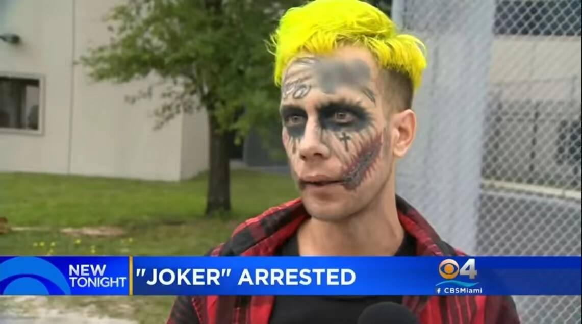 小丑真名劳伦斯•沙利文,在2017年被捕。当时有人报案称,一名绿头发、脸上有纹身的男子,用枪指着过往车辆。警方立即出动逮捕了他,发现他在没有许可证的情况下非法持枪,他还说,“我没有许可证,因为它很贵”。