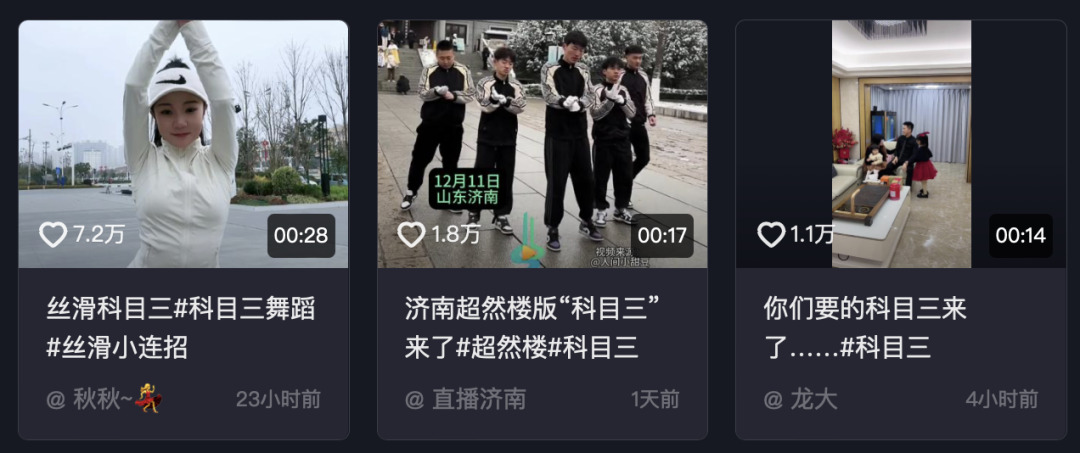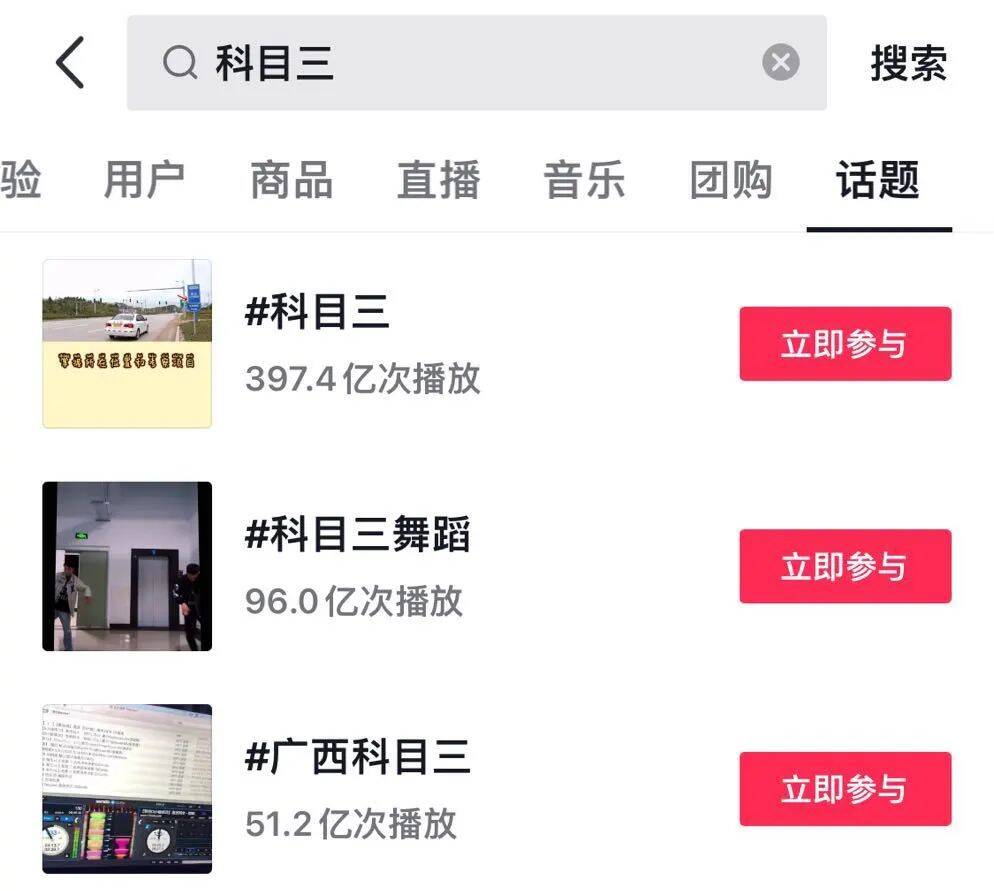 一些考驾照的老哥甚至搜不到科目三教学,只能新创一个 # 科目三练车 # 的话题。