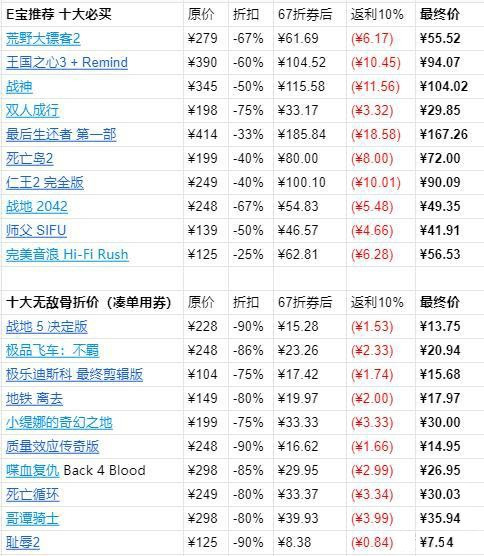 E宝表示,下周将开启16天连送模式。E宝还为大家整理了50个值得购买的优秀作品史低价,一起来看看吧!