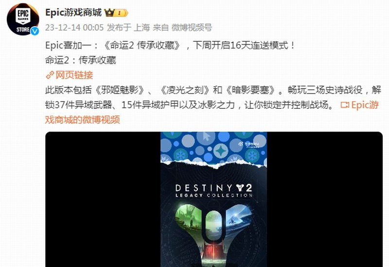 昨日(12月14日)Epic游戏商城2023年节日特卖正式开启,这是Epic全年最大的优惠力度。不仅带来数千款折扣游戏,还有不限量6.7折Epic优惠券、10%的Epic奖励加成。在活动期间,还将送出17款免费游戏,以及各种免费装扮。