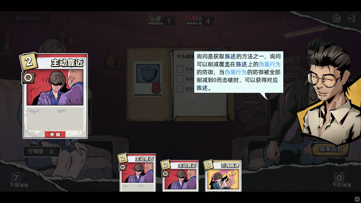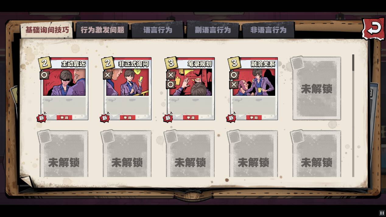 玩家需要通过卡牌去询问证人,得到线索,这个环节需要玩家具备一定的逻辑推理能力,同时也需要耐心和细心。玩家需要合理组合卡牌,利用不同的卡牌技能和特性进行询问。在试玩过程中,我发现游戏中的线索设计十分巧妙,除了攻破防御以外,也可以通过分析卡牌的○和×来判断推理,需要玩家仔细思考和尝试。