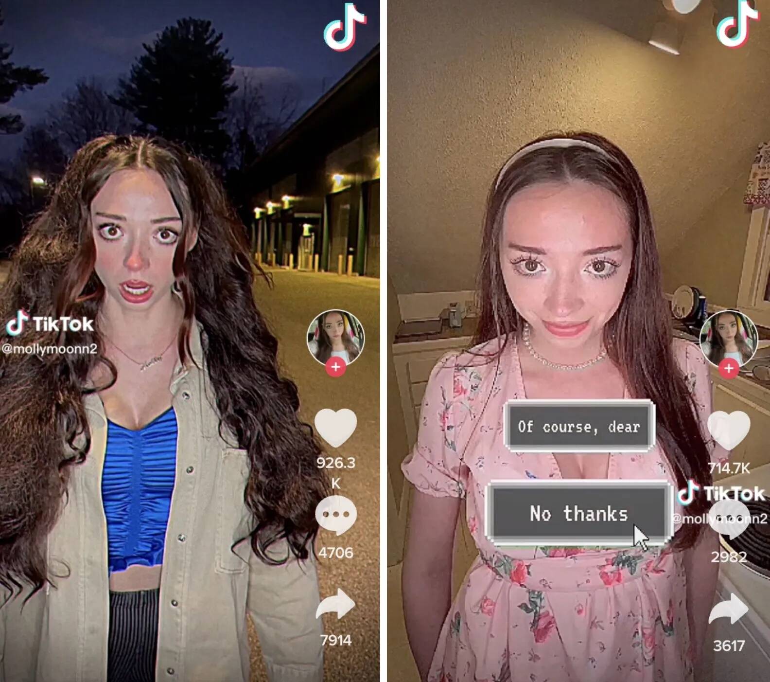 这位名为Molly的TikTok博主在过去一年里积累了百万粉丝,她的视频时长都不过几十秒,平均点赞量却超过百万,还被奉为新晋“恐怖女王”,还出现了以这位女博主为主题的游戏。