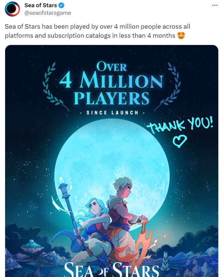 昨日,开发商 Sabotage Studio 宣布《星之海》发售不到 4 个月,全平台玩家数量突破 400 万。