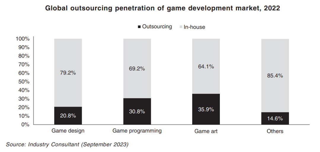 而在游戏的各个开发环节中,美术是寻求外包的比例最高的一项。更方便协调和验收,或许是原因之一。