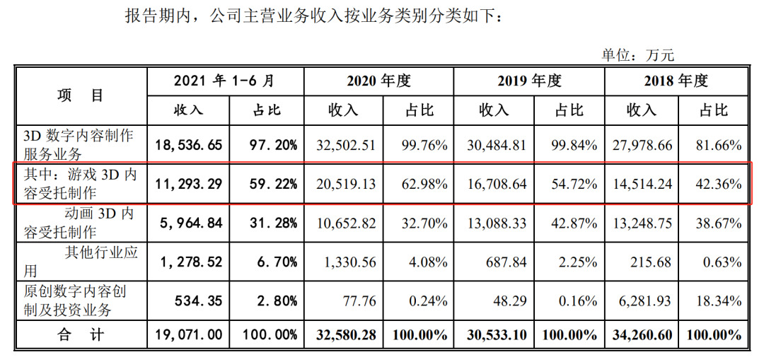 另一个例子是曾在2021年冲击A股上市的原力数字,这家美术外包公司以3D动画业务为主,腾讯、网易和EA都是它排名前五的稳定客户。从那几年的营收状况来看,来自游戏行业的合同收入无论是金额还是占比,都保持着增长态势。这可以从一个侧面印证,游戏公司的美术外包需求确实在上涨。