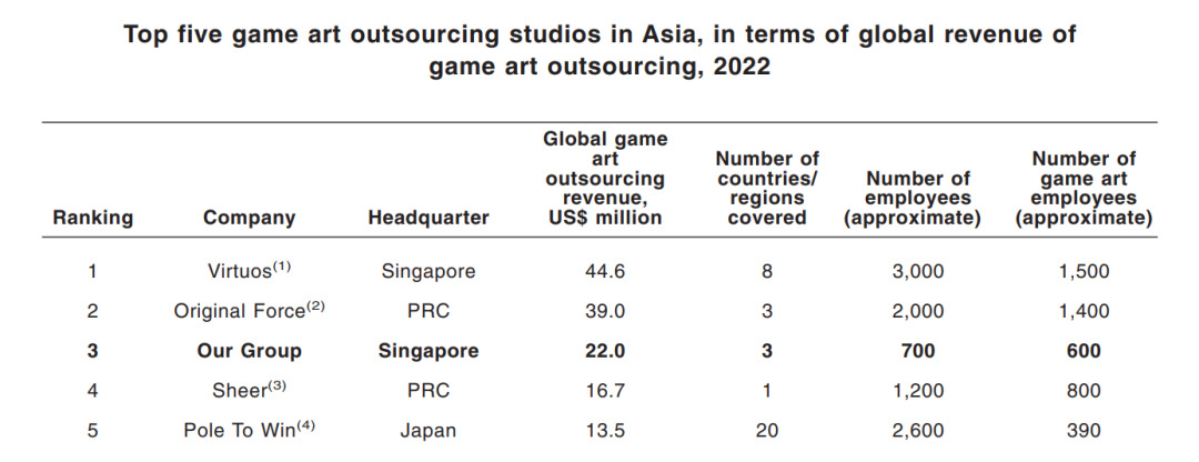 这一趋势同样能从「友商」的状况中看出来。前文已经提及过,唯晶科技在游戏美术外包公司中做到了亚洲第三、全球第四,那么位于它前后的公司都是哪些呢?