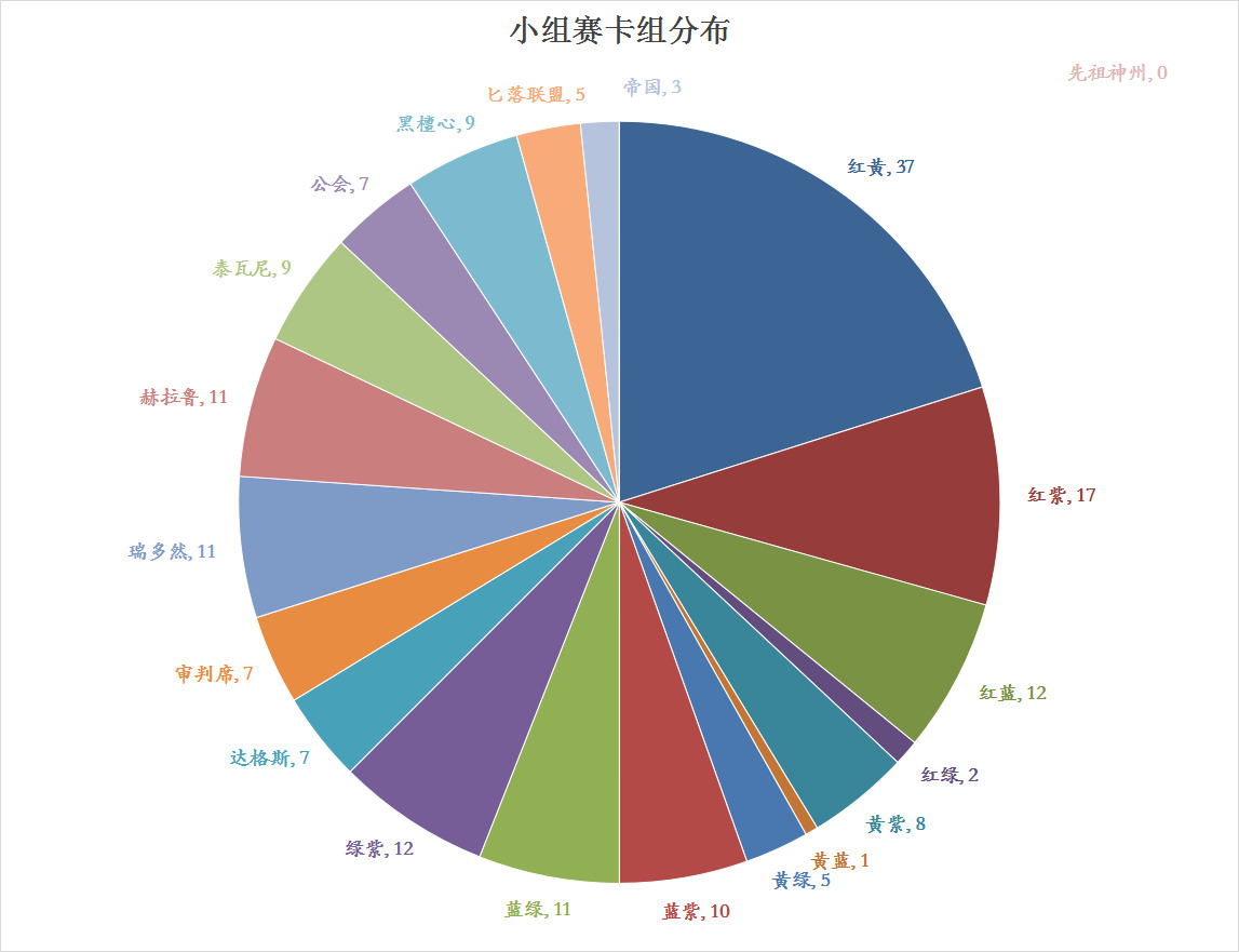 可以看到,先祖神州(黄蓝绿)在比赛中没有选手携带,也许是大部分玩家觉得这个组合没有比较强势的套路或者成熟的体系,实际上先祖神州更适合偏前期的快攻中速战术,有较好的前期生物,有一定量的直伤,不太适合控制思路,原因是没有针对支援的卡,没有沉默手段。