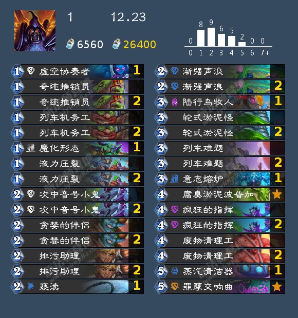 十二月第四期标准搬运,前几天的一波调整确实给环境带来了不小的变化,最直观的就是圣骑士的数量明显变少了,其他削弱职业也相对减少,而在众多的加强职业里表现最好的当然是贼了,虽然大家看到蝎子加强的不小于1时都还是不太看好的,但实际表现还不错,温布雷甚至一度进入狂野构筑。术士的淤泥相关卡牌调整也算不错。而牧师和DK还有战士的改动似乎没有什么影响,只能说未来可期。对卡组有疑问或想了解详细构筑的可以评论区问问,或者直接看网站 https://hearthstone-decks.net/,同时以后应该也会以网站数据为主,个人理解为辅讲解搬运卡组,同时隔壁b站会不定期直播:不知所措某萌新的个人空间_哔哩哔哩_bilibili 欢迎大家关注。 (搬运纯属个人行为,有疑问还请联系)